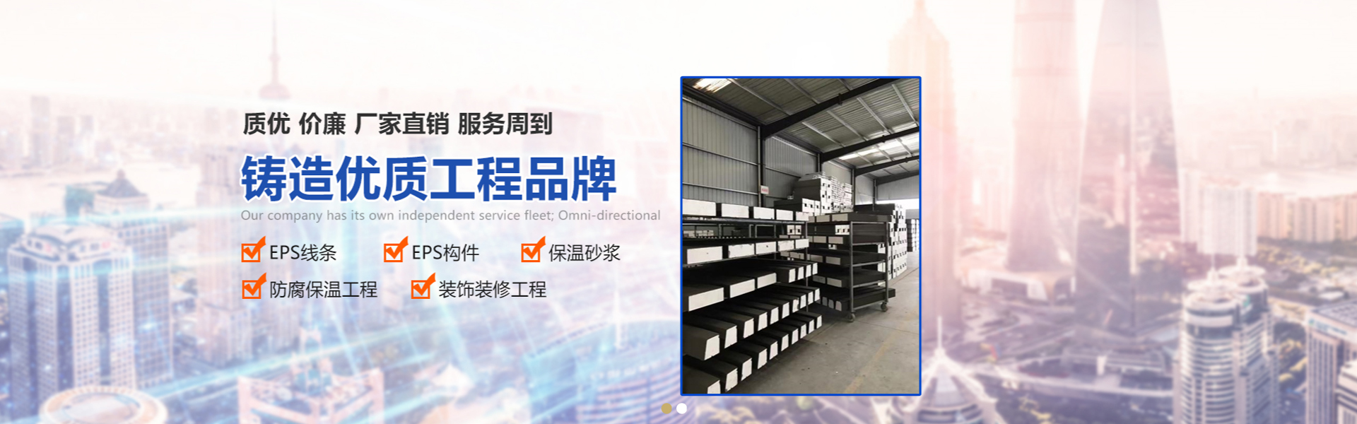 是一家专业生产各种型号的EPS线条、GRC线条、保温砂浆,防腐保温工程和装饰装修工程施工为主的高科技民营企业,专业致力于外墙保温材料和外墙装饰线条的生产和施工工程;